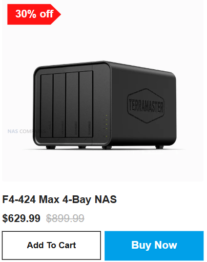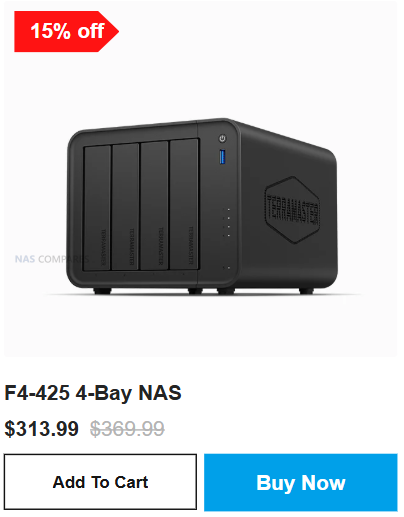Terramaster F4-425 PLUS (New 2025 Series Release) NAS – $484.99