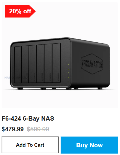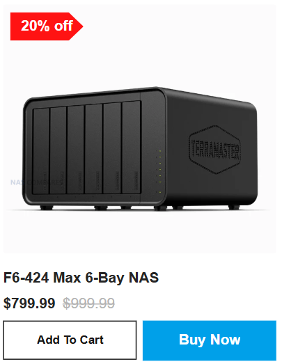 Terramaster F6-424 Max – Powerhouse 6-Bay NAS – $150 OFF, Now $849.99