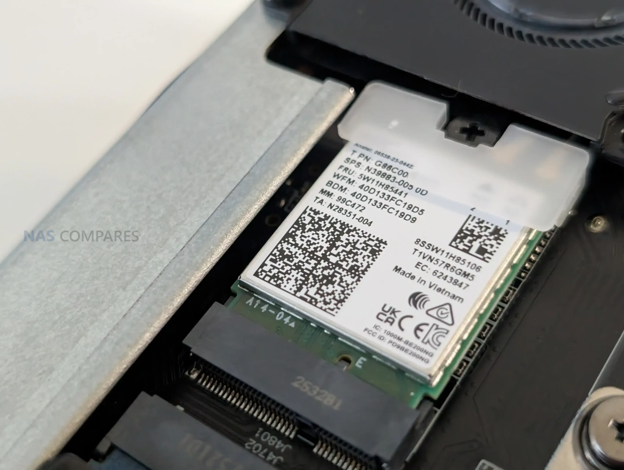 Wireless capability is supplied via a WiFi 7 and Bluetooth 5.4 module connected through an M.2 E-Key slot, providing high-throughput wireless performance alongside its wired interfaces. Together, these connectivity features expand the system’s potential use cases, particularly for users planning to deploy virtualized environments or bandwidth-intensive tasks such as shared storage testing or multi-system clustering.
