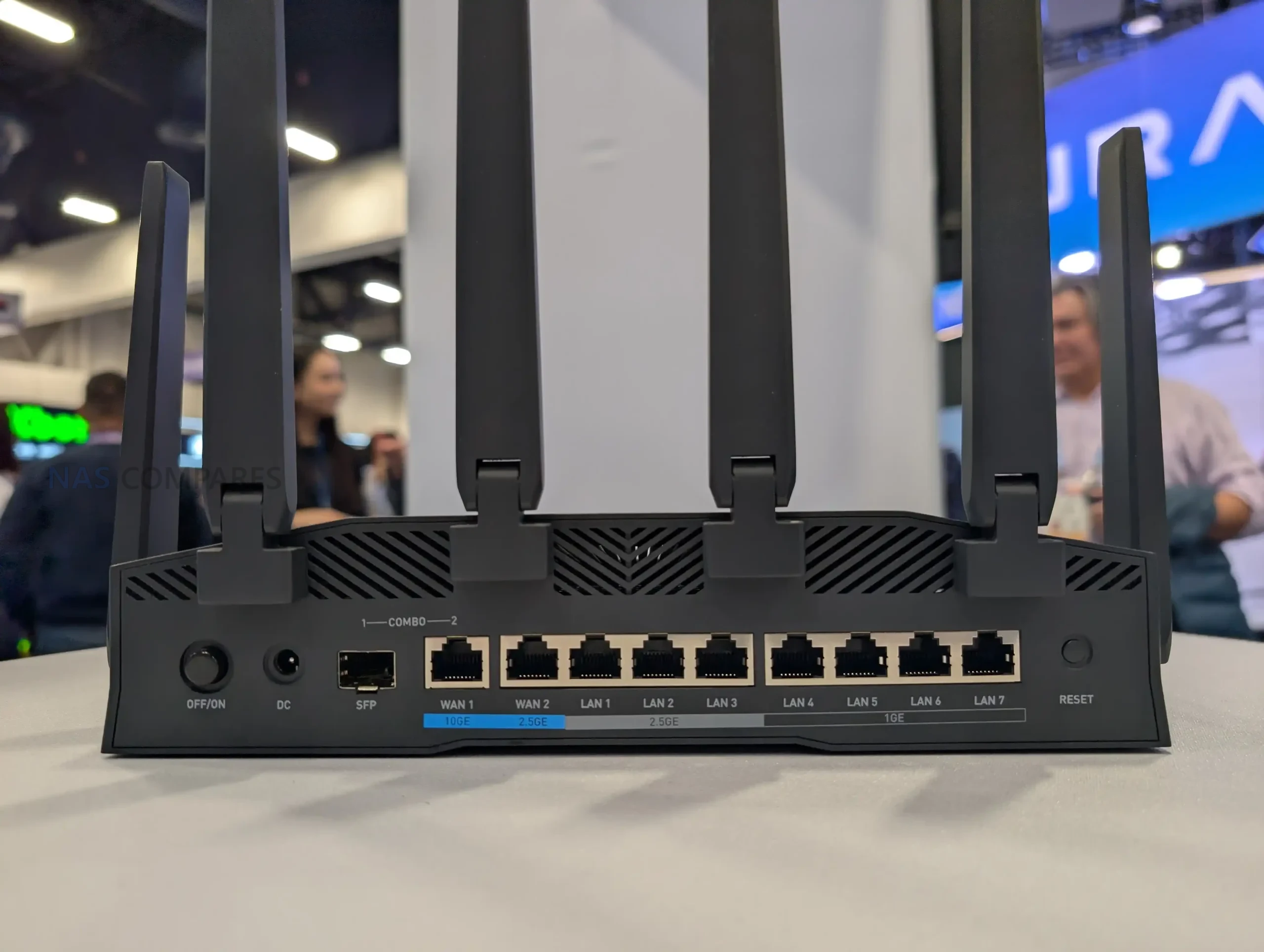 Wireless is described as Wi-Fi 7 with support spanning 2.4 GHz, 5 GHz, and 6 GHz, but the exact radio layout is not confirmed. In the CES prototype discussion, GL.iNet could not confirm whether the final design stays at 3 bands or adds a second 5 GHz radio, which would affect how it handles simultaneous clients, channel width choices, and multi-link operation in practice.