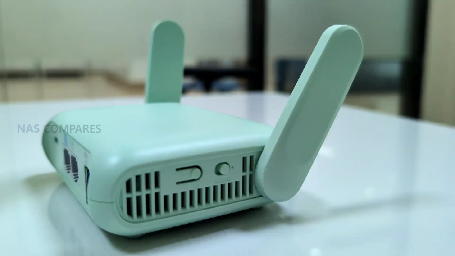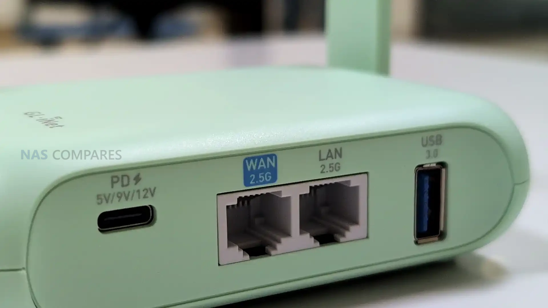 The Beryl 7 is positioned as an updated travel router that builds on the feature set of the original Beryl while shifting to a more capable Qualcomm quad core processor running at 1.1GHz and 1GB of DDR4 memory. It uses IEEE 802.11a, b, g, n, ac, ax and be wireless standards and supports dual band WiFi 7 operation on the 2.4GHz and 5GHz bands. Although it does not include 6GHz support, it delivers higher throughput than its predecessor, reaching 688Mbps on 2.4GHz and 2882Mbps on 5GHz. The unit also integrates two foldable external antennas and two 2.5GbE ports that can be configured as WAN plus LAN or as dual LAN for specific on-the-go deployment requirements.