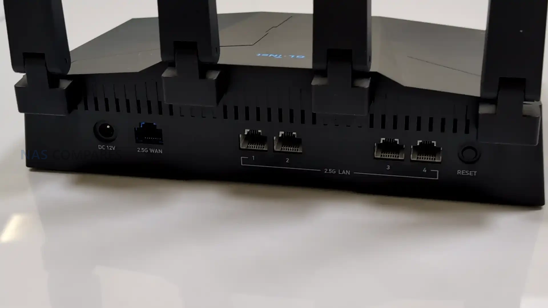 The Flint 3e is a dual band WiFi 7 router aimed at users who want higher wireless throughput and multi gigabit Ethernet connectivity without moving to a full tri band system. It is built around a Qualcomm quad core processor running at 1.5GHz with 1GB of DDR4 memory and 512MB of NAND storage. Wireless support covers IEEE 802.11a, b, g, n, ac, ax and be, delivering 688Mbps on 2.4GHz and 5764Mbps on 5GHz. The unit includes four external foldable antennas, a dual colour LED indicator and a housing designed for stable operation in home or small office environments. Connectivity is centred around five 2.5GbE ports, with one operating as a dedicated WAN input and the remainder configurable as LAN. This gives the router a faster wired backbone than earlier consumer models from the brand.