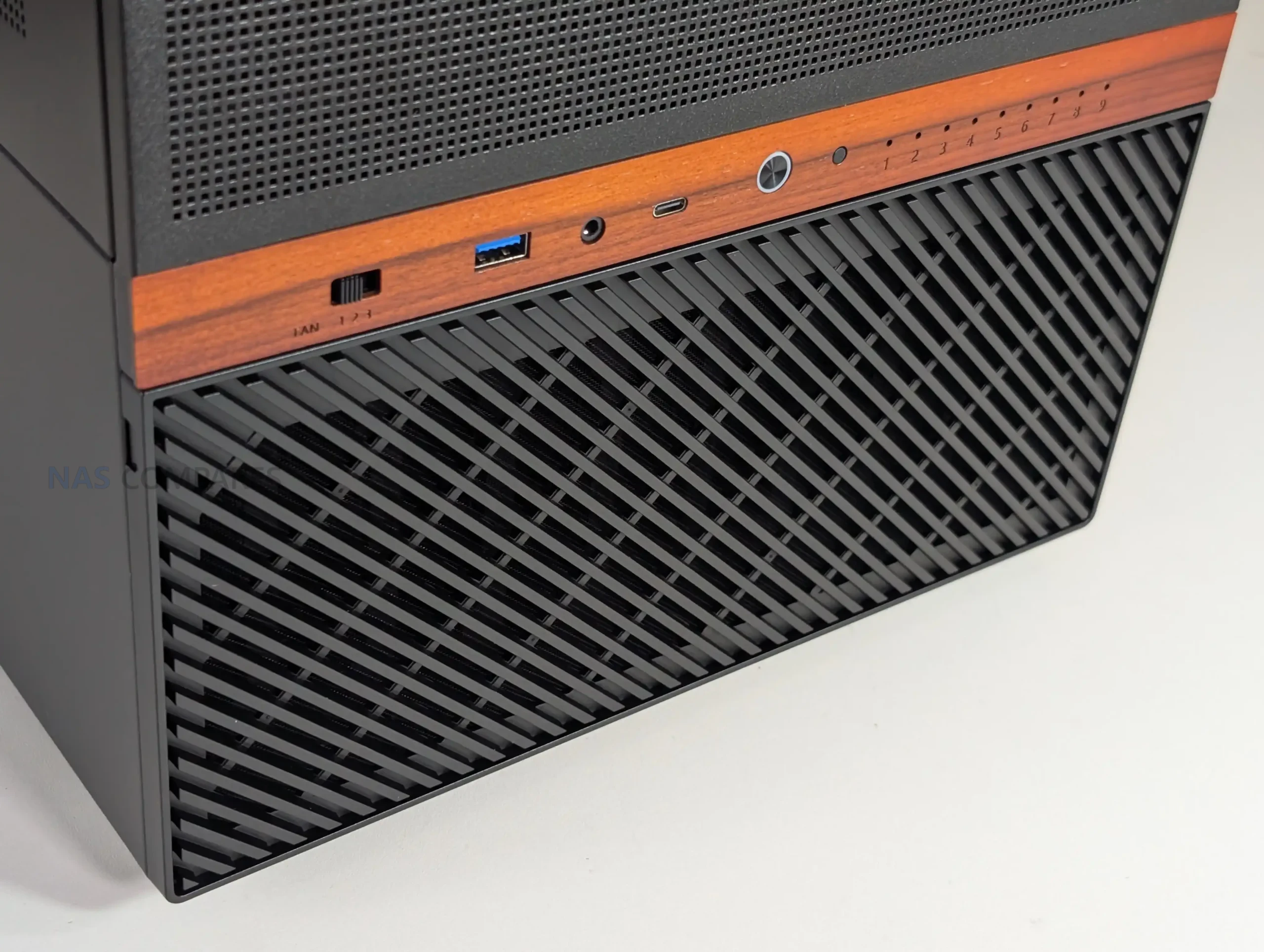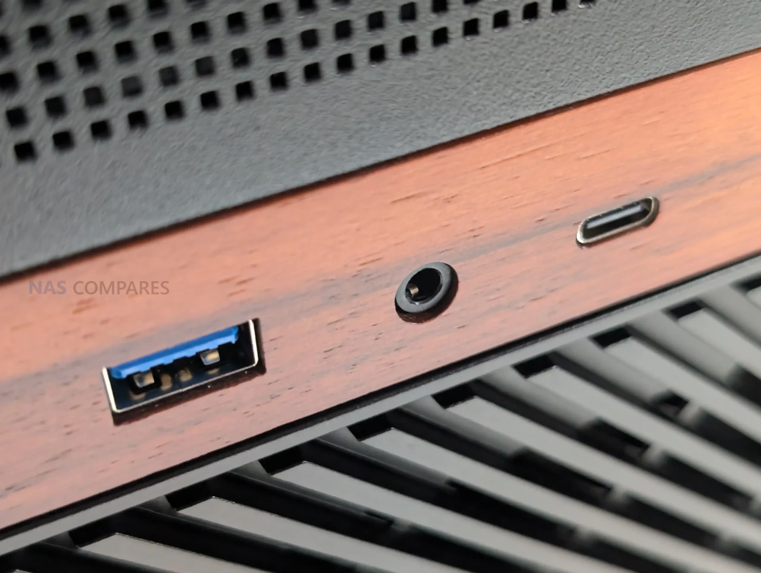 In practical use, the inclusion of a USB 3.2 Gen2 Type C port provides a high bandwidth option for external storage, temporary backups, or maintenance tasks such as system recovery media. Alongside it, the USB 3.0 Type A port offers compatibility with a wide range of existing peripherals. This combination should be sufficient for most NAS focused workflows, where frequent hot swapping of peripherals is uncommon but occasional high speed access is still required.