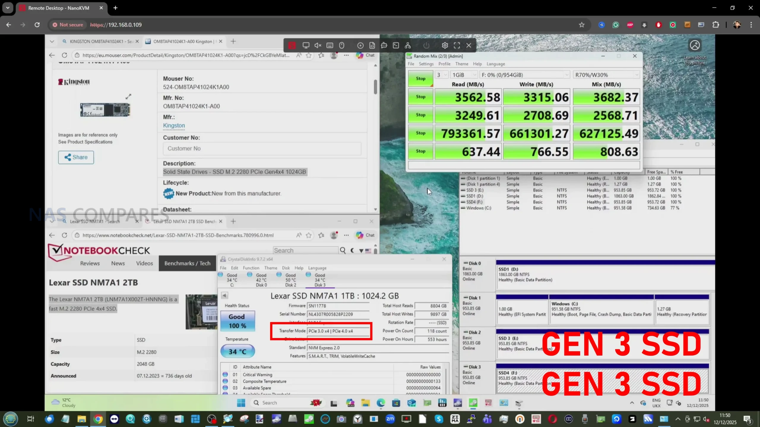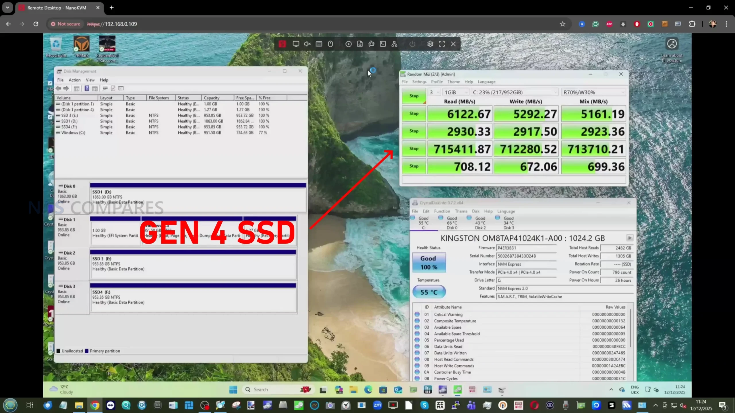 Where the MS-02 Ultra differentiates itself is in scalability rather than raw out-of-the-box performance. USB4 ports supported external GPUs and high-speed storage without issue, and internal PCIe expansion allowed for measurable gains when discrete graphics were introduced. Storage benchmarks showed expected scaling across PCIe generations, with PCIe 5.0 NVMe drives exceeding 12 GB/s, PCIe 4.0 drives reaching around 6 GB/s, and PCIe 3.0 drives performing in line with their specifications. Overall, performance testing confirmed that the system’s architecture prioritizes flexibility and sustained throughput over specialization in any single workload.
