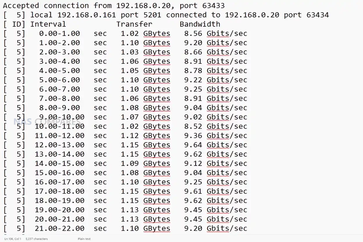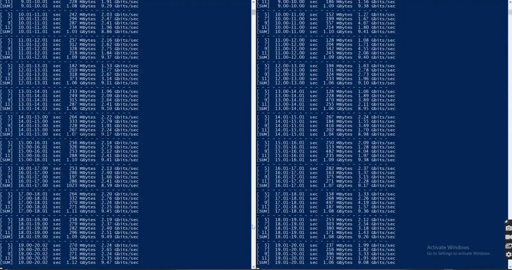 In practical testing, the QNA-UC10G2T delivered sustained throughput that closely aligned with QNAP’s published figures, with both ports maintaining stable operation during long running transfers. When used with IP based benchmarking tools, each 10GbE connection reached near saturation independently, confirming that the internal controllers can deliver full bandwidth without cross interference. During concurrent testing where two separate sessions targeted different devices, both ports maintained consistent performance levels, which demonstrated the benefit of having two discrete AQC113 controllers rather than a single shared architecture that would introduce contention under load.