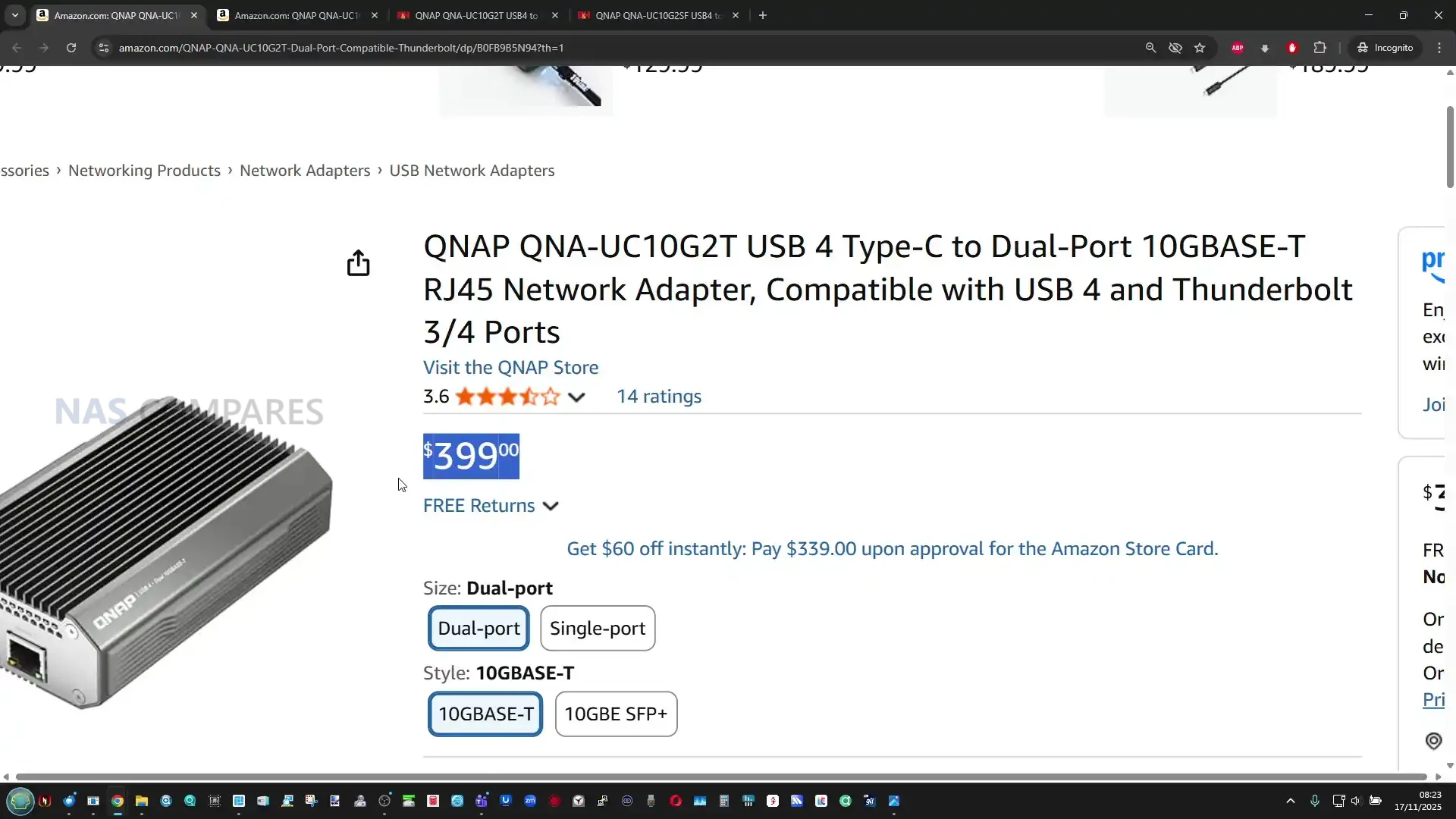 25. Their previous TB3 10G unit I had ran hot and was unreliable, but it looks like they’re doing better here. If these can work with USB4 enabled NAS then the upcoming 25G would be really interesting for super fast direct connection..