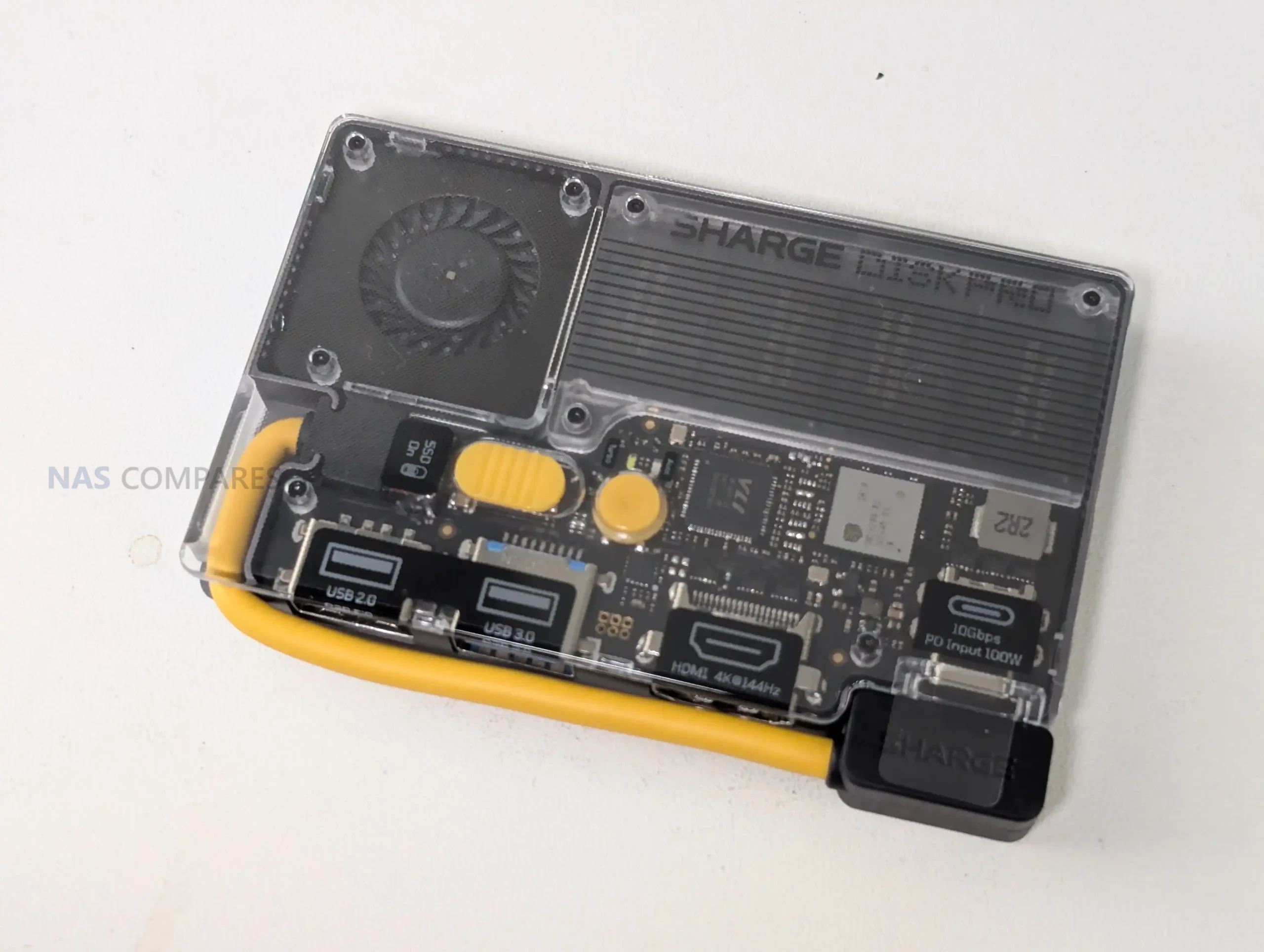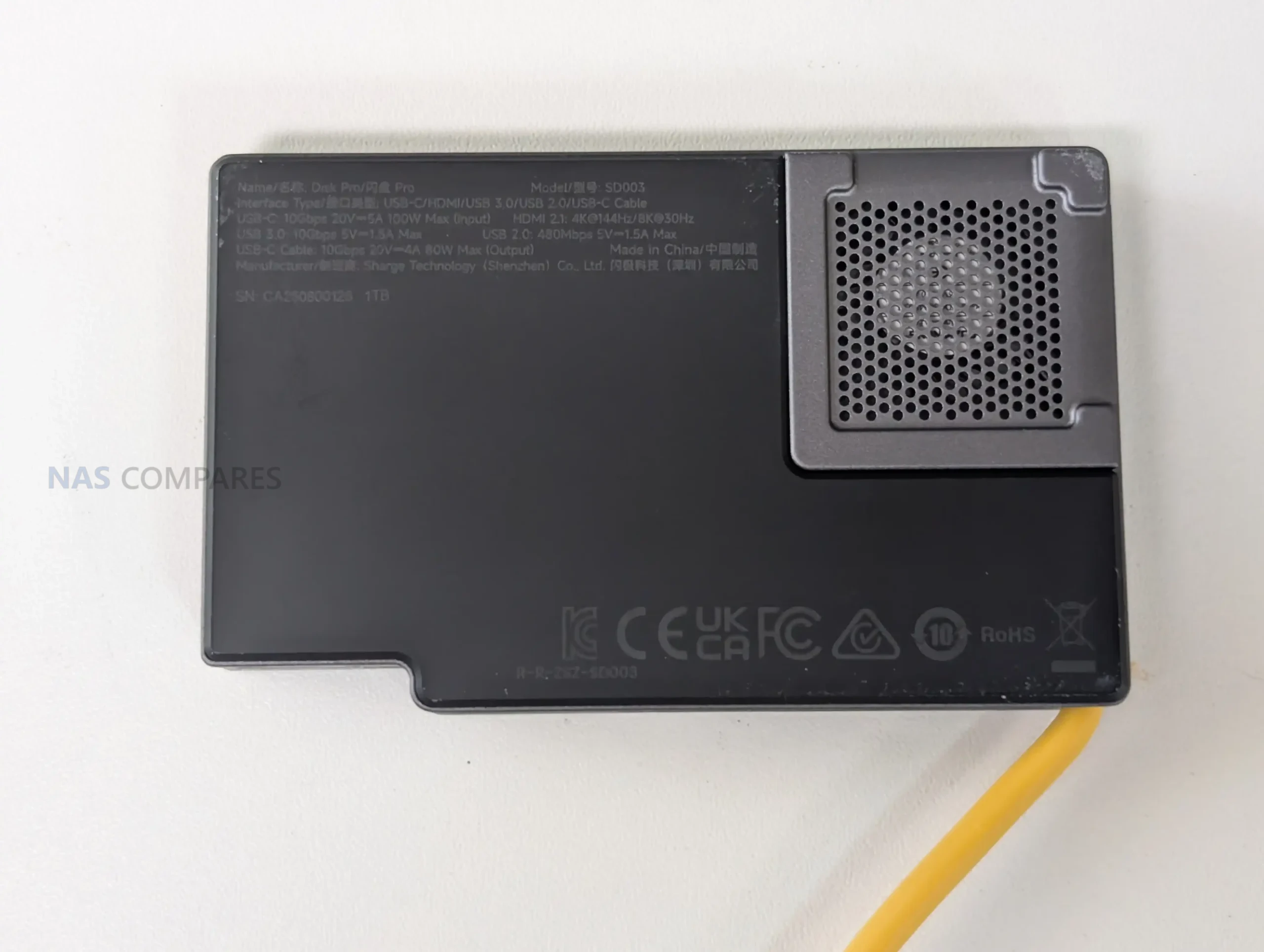 Internally, the Disk Pro integrates TLC NAND flash storage that is permanently sealed within the casing. It comes in 1TB, 2TB, and 4TB configurations, but does not support user replacement or expansion. Sharge has stated that opening the casing would compromise the structural integrity of the fan-assisted cooling system, which directs airflow directly across the SSD and controller. While this closed design limits user flexibility, it contributes to improved durability and controlled thermals during sustained data operations, addressing a common weakness in other compact SSDs that tend to throttle under heavy load.
