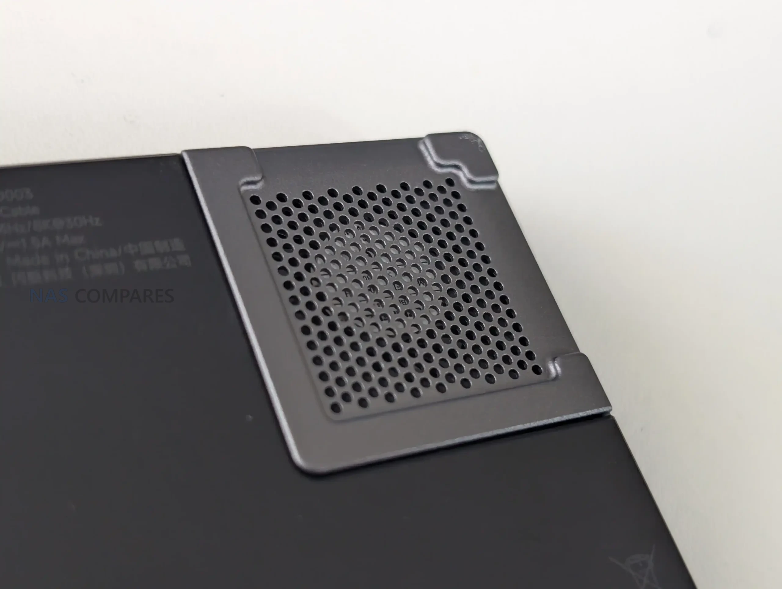 When the fan was activated in Auto mode, the device maintained temperatures around 34–35°C externally, and the SSD’s internal sensors never exceeded 40°C during prolonged testing. In Turbo mode, which spins the fan up to 10,000 RPM, the system achieved an additional reduction of around 5°C compared to passive cooling. For comparison, typical compact SSDs of similar capacity can reach over 60°C under similar workloads, confirming that active cooling provides tangible longevity and stability benefits for the NAND and controller components.
