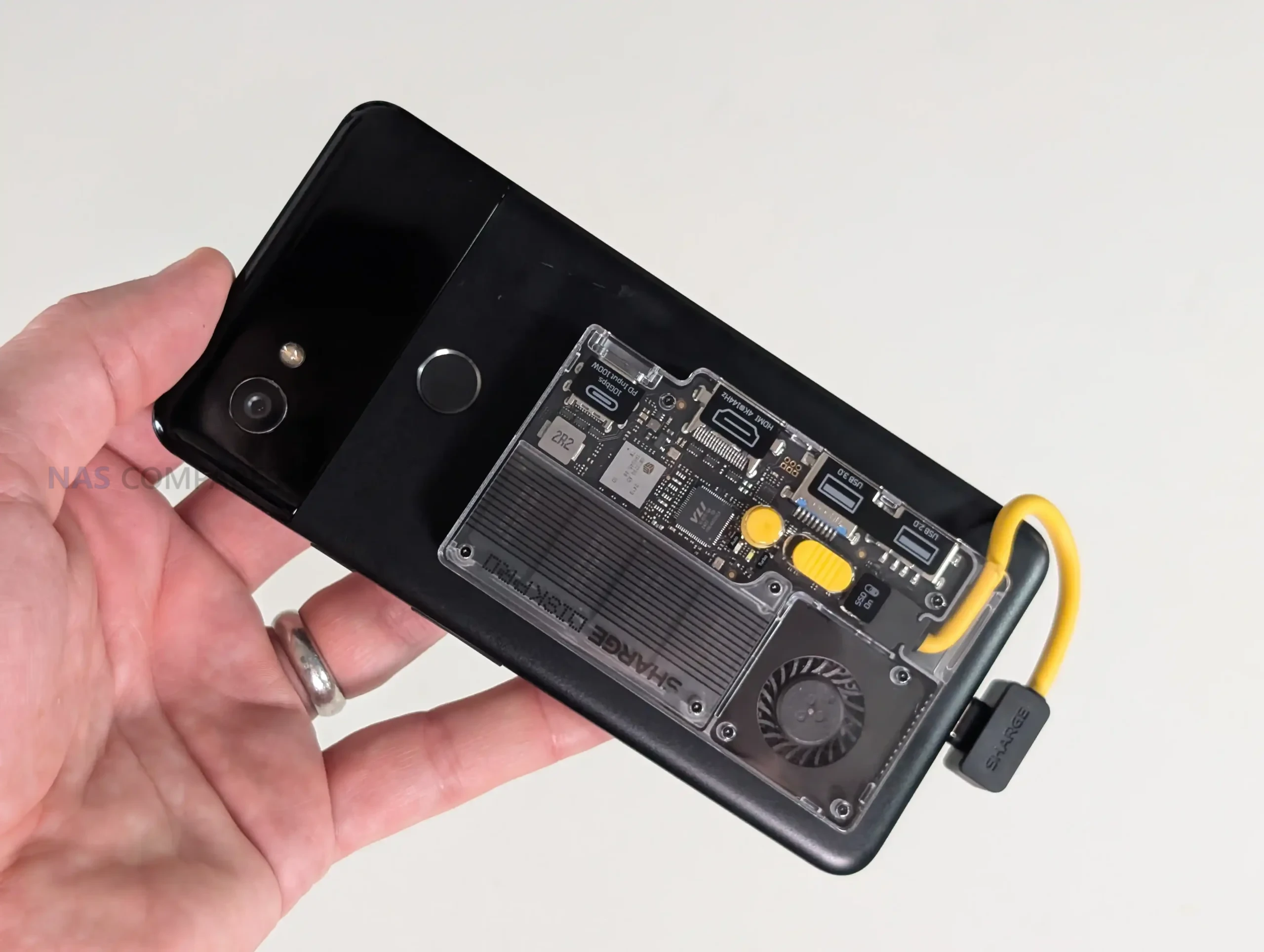 The Sharge Disk Pro is a compact external SSD and multifunction USB hub aimed at users who need additional high-speed storage and connectivity for their mobile or desktop devices. Measuring roughly the size of a credit card and just 11mm thick, it merges solid-state storage, data transfer, and video output within a single enclosure. The device is equipped with an integrated USB-C cable, a fan-assisted thermal system, and a magnetic mounting design that allows it to attach securely to compatible smartphones, handheld gaming consoles, or laptops. Available in 1TB, 2TB, and 4TB versions, it uses 162-layer 3D TLC NAND flash and supports sustained 10Gbps transfers via USB 3.2 Gen 2. The Disk Pro also includes active and automatic fan modes designed to regulate temperature during extended operation. Unlike a standard enclosure, it has no option for user-upgradeable storage, with Sharge citing the closed design as essential for cooling performance. The product is currently being crowdfunded through Kickstarter, with early pricing beginning at $189 for the 1TB model and scaling to $469 for the 4TB version, and retail availability expected after the campaign concludes.