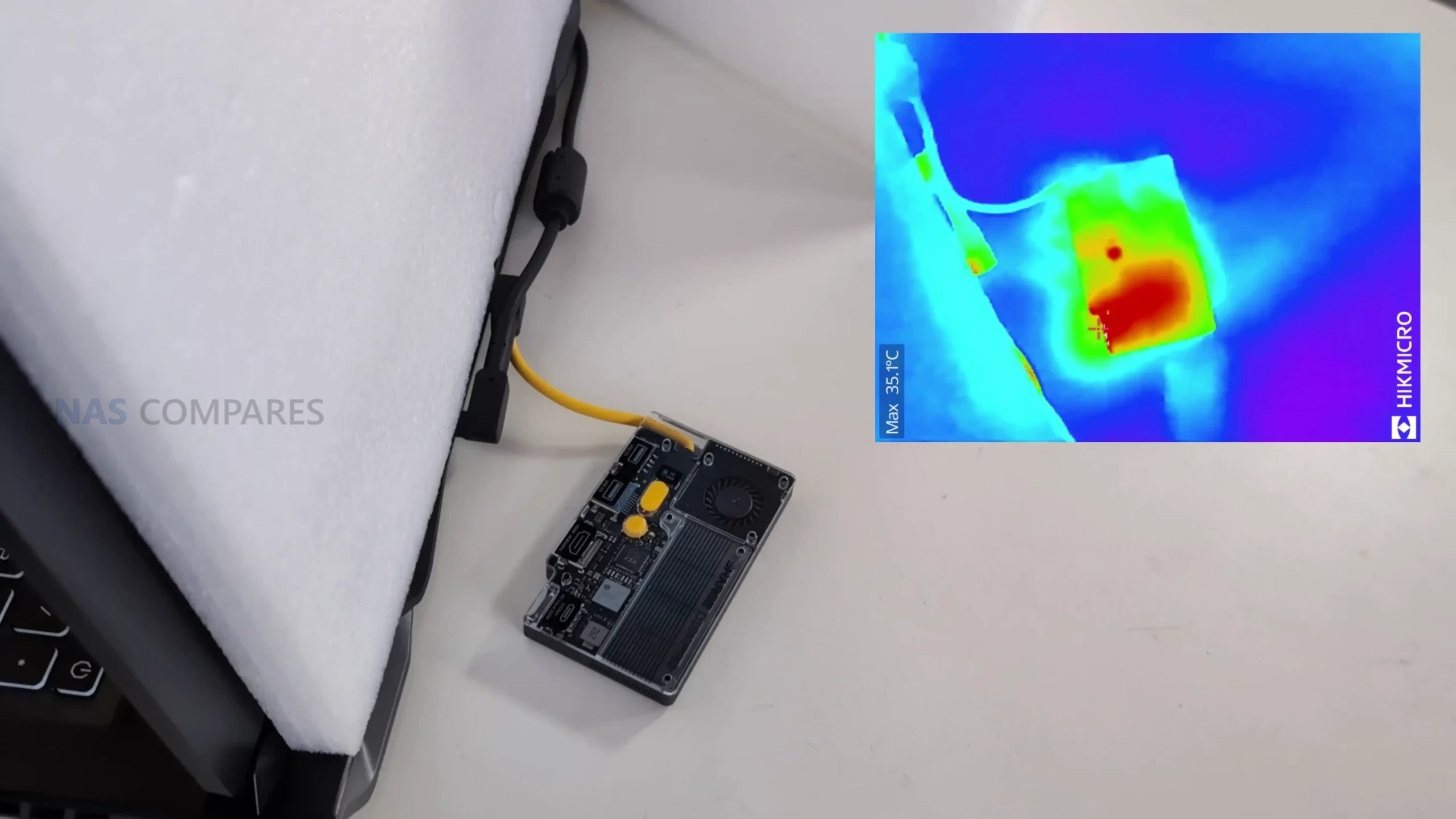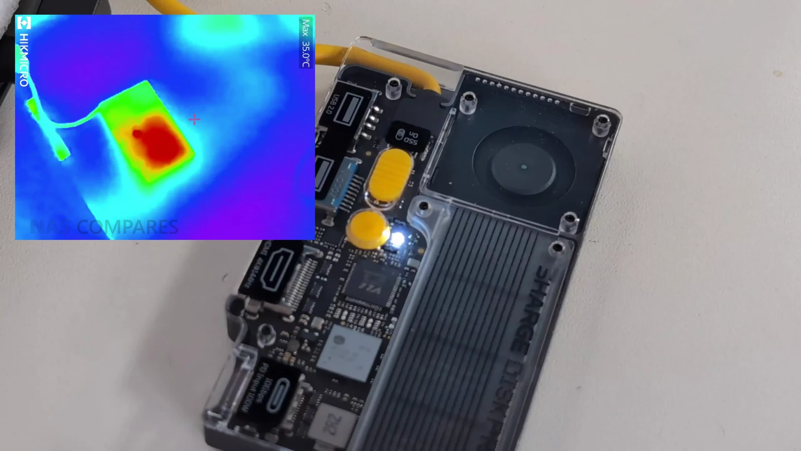 Thermal performance was a key focus of Sharge’s design, and testing showed the fan to be highly effective at maintaining low SSD temperatures. With the fan disabled, idle temperatures hovered around 35–37°C, rising only slightly during short file operations.