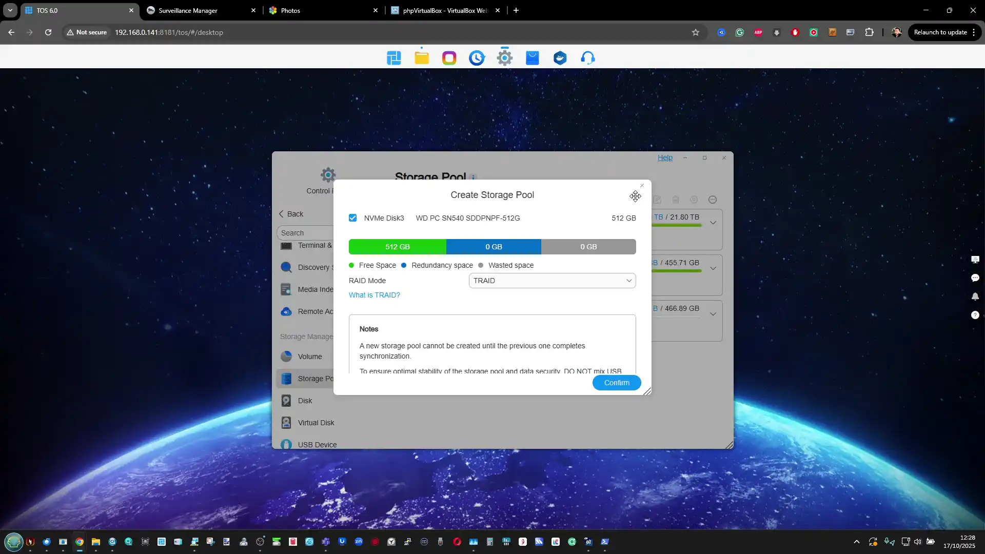 Storage management within TOS 6 has evolved into a far more granular and flexible system. The platform supports both traditional RAID configurations and TerraMaster’s adaptive TRAID and TRAID+ systems, which allow mixed-capacity drives to be combined while retaining redundancy across one or two disks. This feature makes expansion and migration easier, particularly for users gradually upgrading storage capacity. RAID rebuilding efficiency has also improved through “fast repair,” a mechanism that prioritizes only data-occupied sectors rather than empty disk space, substantially reducing recovery times after drive replacement. The system now separates the operating system from storage volumes entirely, allowing users to install the OS on one or two designated drives, typically SSDs, to improve response speed and cache access performance. This separation not only increases system responsiveness but also helps to protect data pools from corruption caused by OS-level failures.
