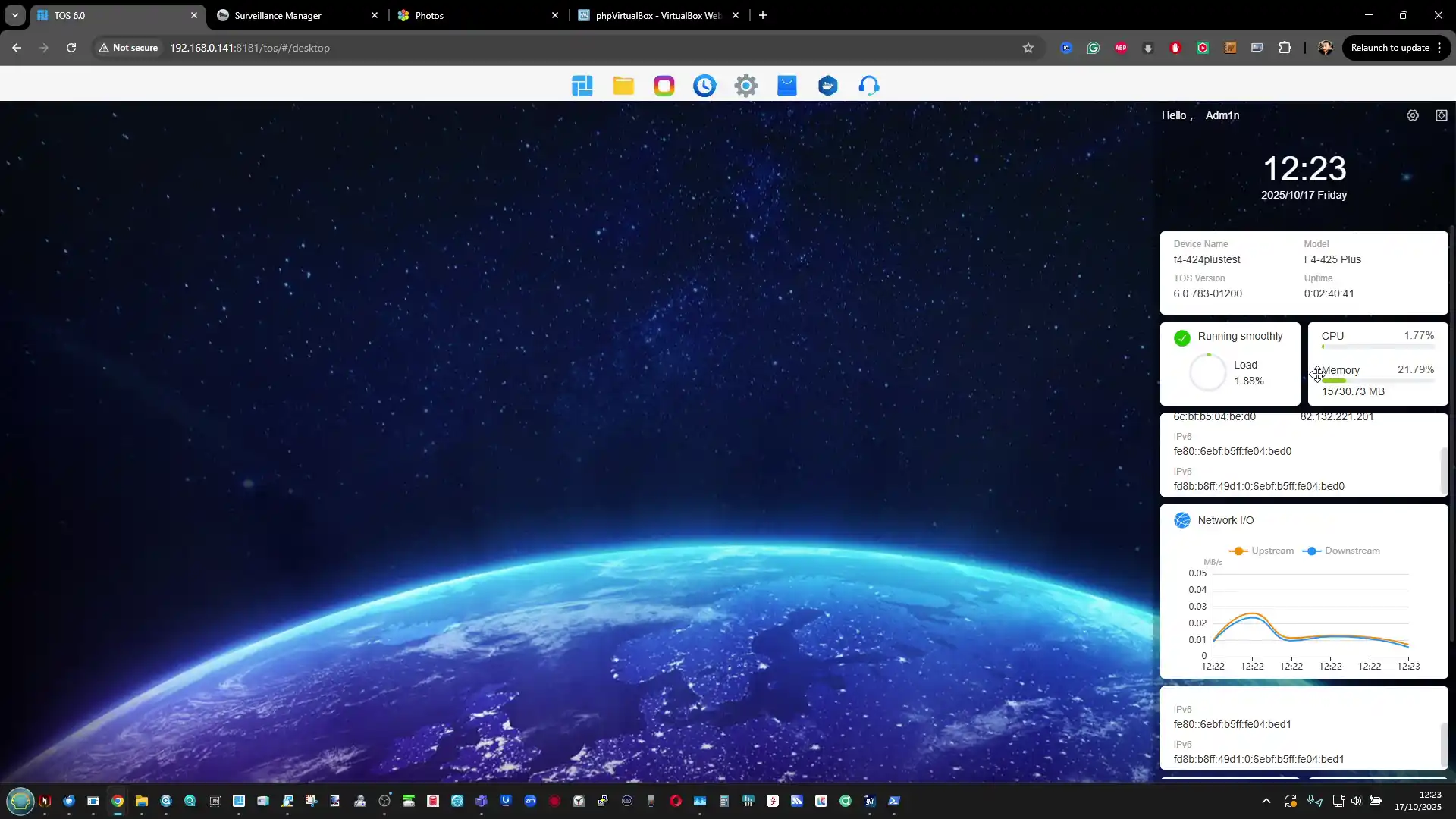 TOS 6 introduces a significantly redesigned interface that emphasizes simplicity and consistency while retaining the technical depth expected from a NAS management platform. The desktop layout has been decluttered, removing excess icons in favor of a single navigation bar that centralizes access to applications, settings, and the new “Start” shortcut menu. This layout, combined with subtle animation effects and theme customization options such as Night Mode and accent color selection, is intended to make the environment less visually overwhelming than previous releases. While the interface feels smoother and more responsive, some users may still find it utilitarian compared to the polished design language of DSM or QTS. Nevertheless, the decision to reduce visual clutter and allow personalized dashboards marks a meaningful progression toward a more user-centric control experience.