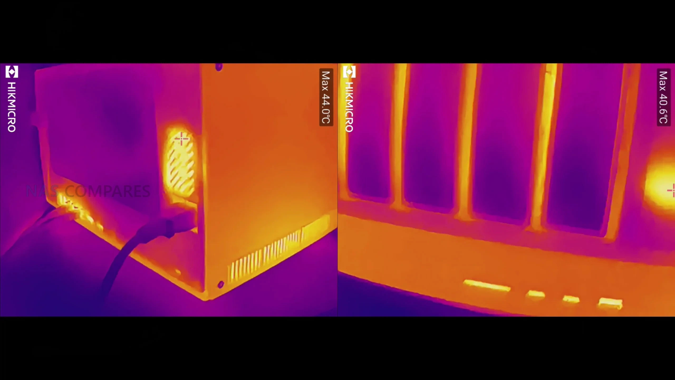 • Thermals after ~36 hours sustained access: top ~35C, bays ~38C, vents ~38C, lower channels ~41 to 44C, rear ~44 to 45C, LCD ~45C