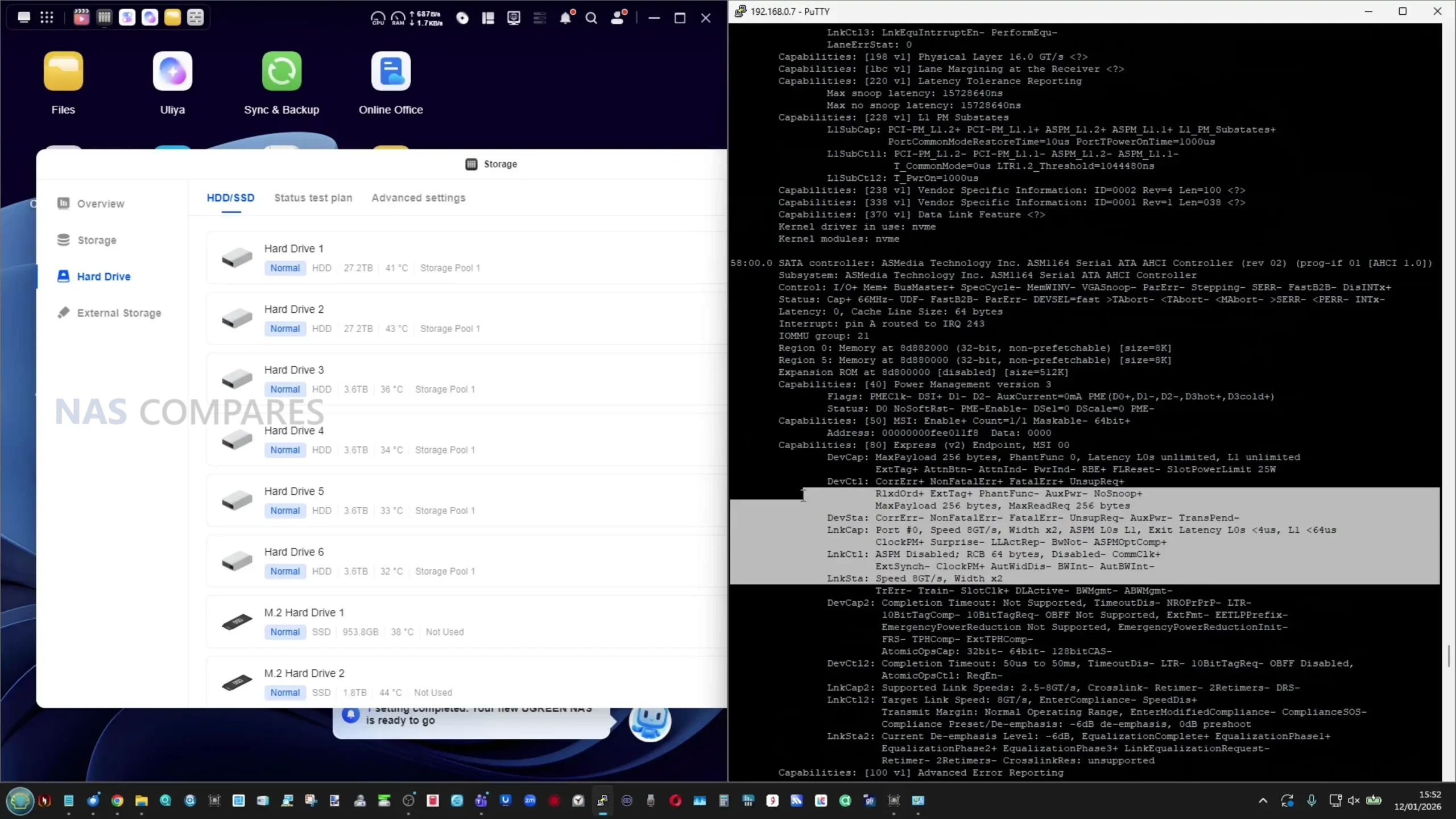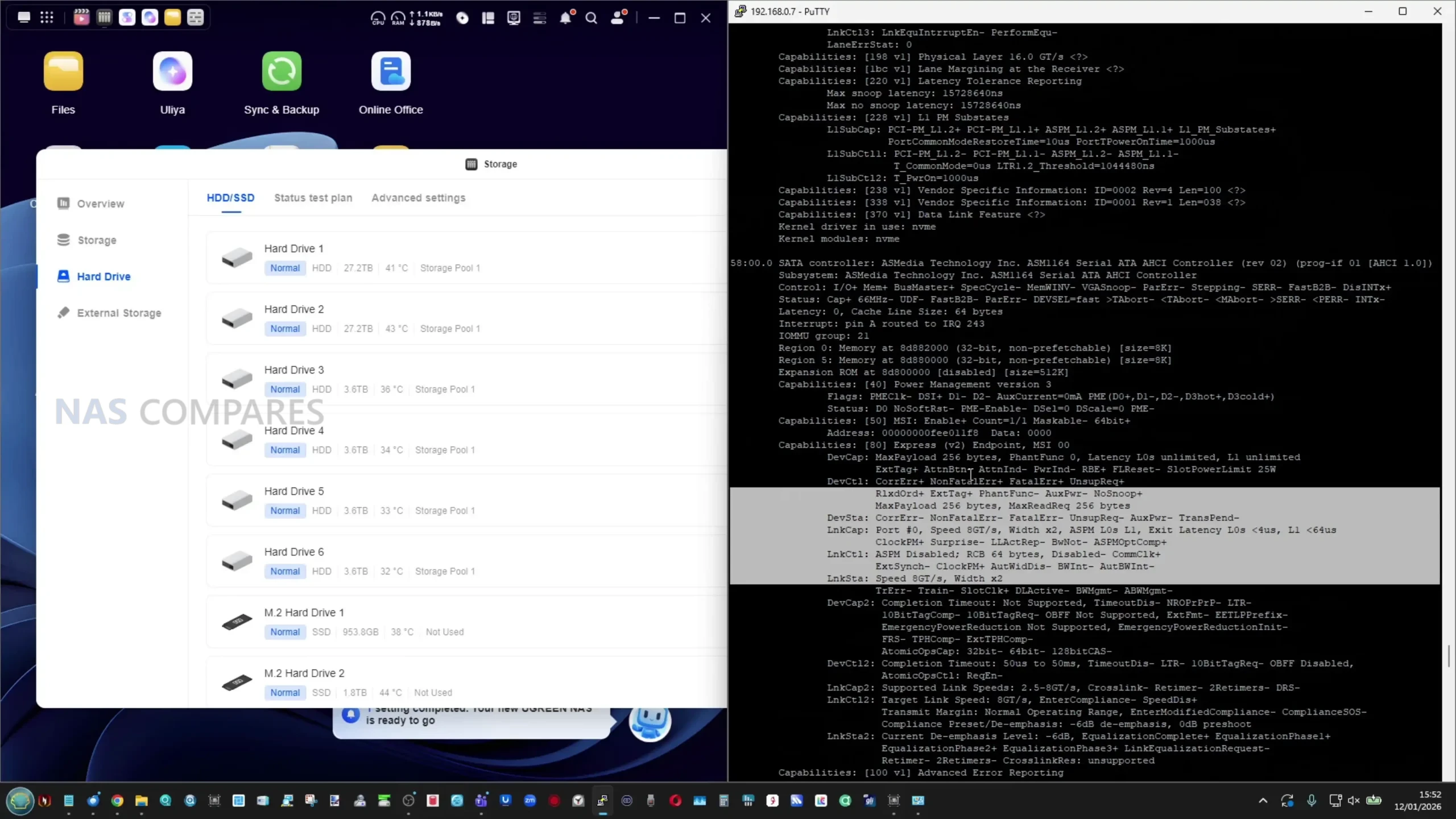 • NVMe internal performance: ~5.5 to 6.0 GB/s read and write (UGOS benchmark and SSH tests)