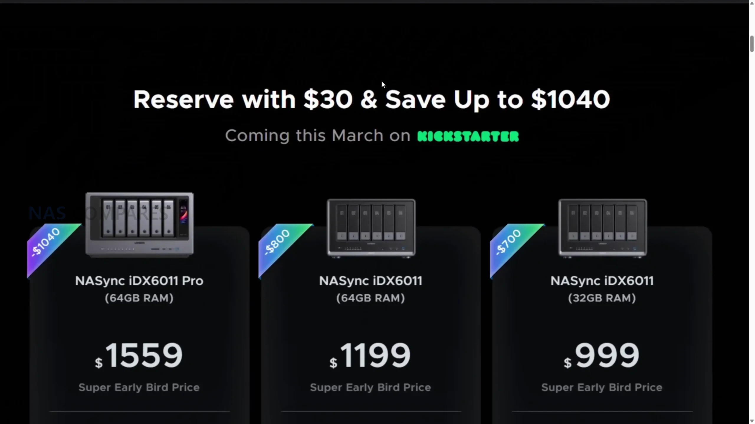 Kickstarter launch price (Early Bird) $1819 $1399 $1189
