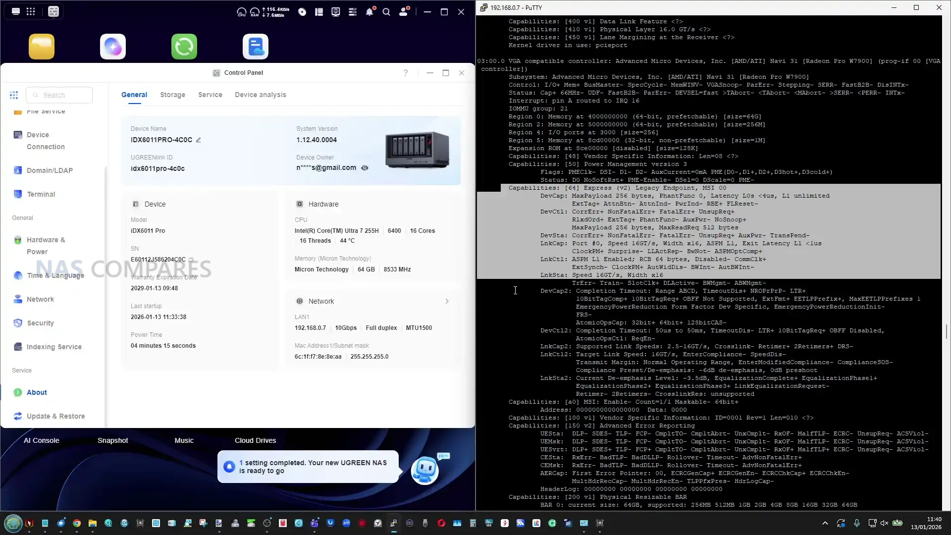The hardware review unit is described as a pre release prototype, and while the physical build appears close to final, some behaviour, especially around performance tuning and software integration, should be treated as subject to change before shipping. The overall internal hardware direction is clear though: this is not designed around the low power NAS CPU segment, and the component choices indicate UGREEN is targeting users who want workstation class connectivity and compute inside a NAS form factorAM, rather than a minimal file server.